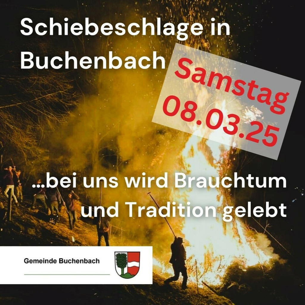 Am Samstag, 08.03.2025 findet das traditionelle Schiebeschlage in Unteribental ab Einbruch der Dunkelheit gegen 18:00 Uhr statt.