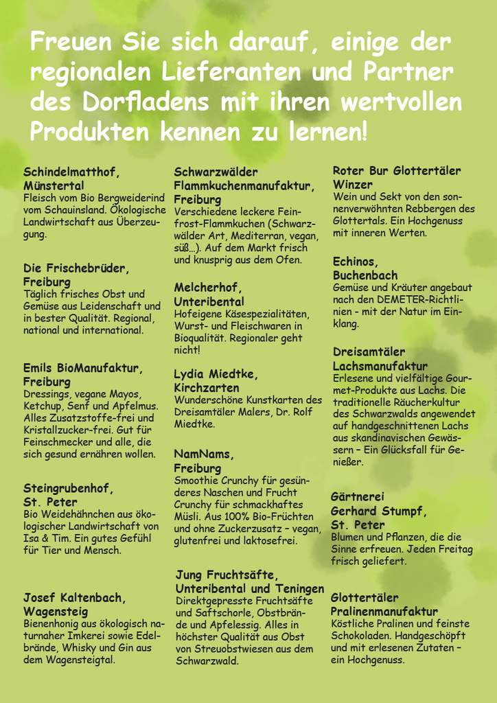 • für musikalische Unterhaltung sorgen der Musikverein Buchenbach und ab 13.30 Uhr Conny Goldschmidt, Oliver Trenkle & Thomas Fuß