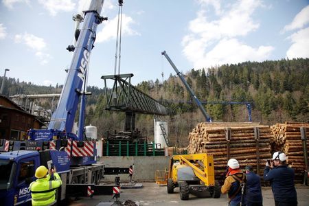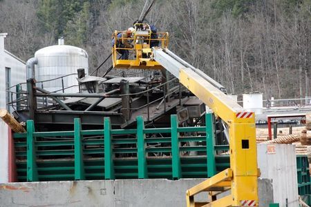 Kranabbau auf dem Sägewerkgelände der Firma Dold
