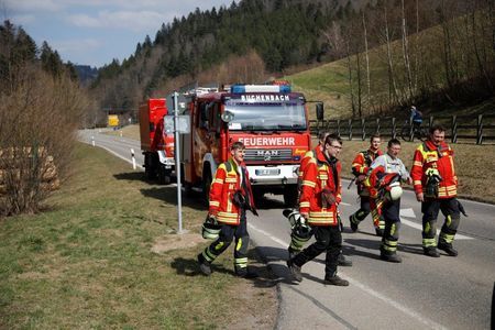 Kaum war der Einsatz beim Kranabbau vorbei, wurde die Feuerwehr zum Waldbrand an der Nessellache, dem Gemarkungsrand von Buchenbach gerufen und wieder stand Brandwache an.