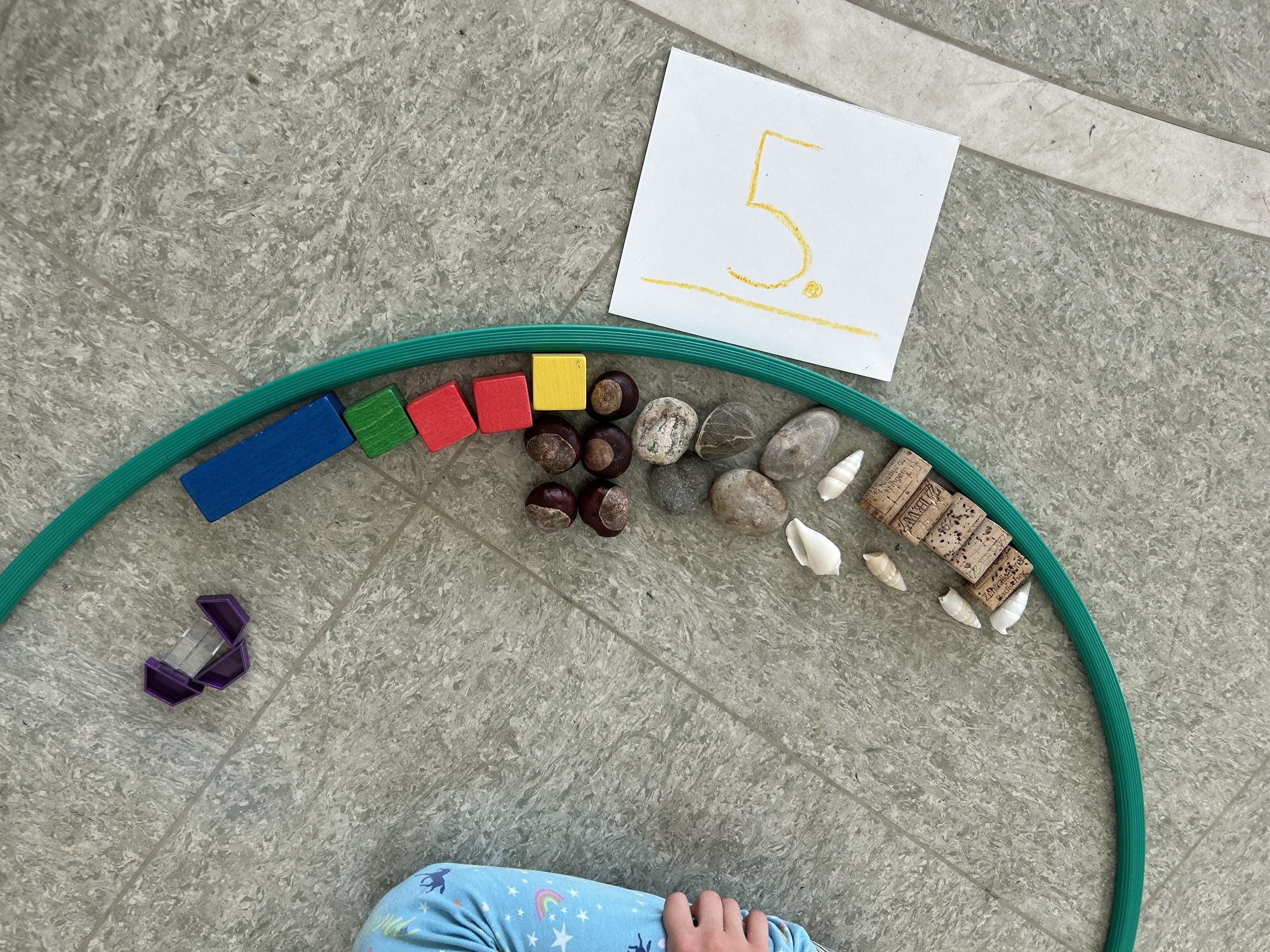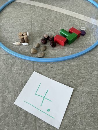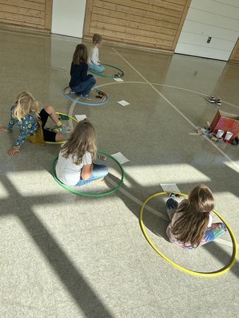 Als Oberthema haben sich unsere sechs diesjährigen Schulanfängerinnen das Thema: "Höhlen, Erde und Fossilien" ausgesucht. Alle Lerneinheiten werden durch dieses Thema begleitet.Aktuell befinden sich die Schulanfängerinnen im geheimnisvollen Zahlenland. Dort werden sie selbst zu Zahlen (Hausnummern) und wohnen in ihren Häusern (Reifen) alle nebeneinander.