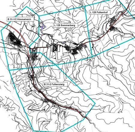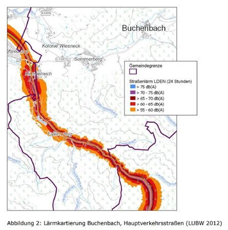 Durch Buchenbach, OT Falkensteig führt die B 31, eine Hauptverkehrsstraße mit einer Verkehrsbelastung über dem Schwellenwert der zweiten Stufe der Lärmkartierung (8.200 Kfz/24h, § 47b Nr. 3 BImSchG). Die Gemeinde ist daher zur Erstellung eines Lärmaktionsplans gesetzlich verpflichtet. Für die B 31 wie auch dem weiteren, freiwillig kartierten Verkehrsweg der L 128 werden mögliche Maßnahmen zur Minderung der Lärmbelastungen untersucht.